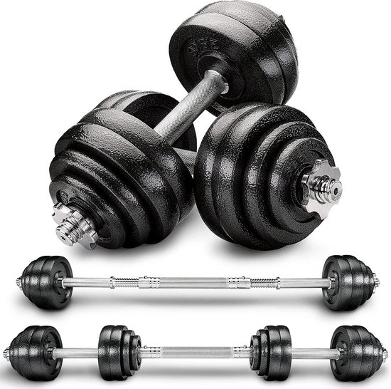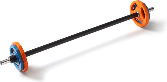 Met de Basic-Fit® Dumbbell Set heb je alles wat je nodig hebt om thuis een geweldige training te krijgen. Deze set bevat dumbbells, een halterstang, en halterklemmen. Het gewicht van de dumbbells is instelbaar, zodat je je training kunt aanpassen aan je eigen fitness niveau. De halterstang heeft een standaard Olympische hulsmaat van 2 inch (50 mm), waardoor hij compatibel is met de meeste halterschijven. De set wordt ook geleverd met een handige draagkoffer, zodat je hem mee kunt nemen naar de sportschool of onderweg.