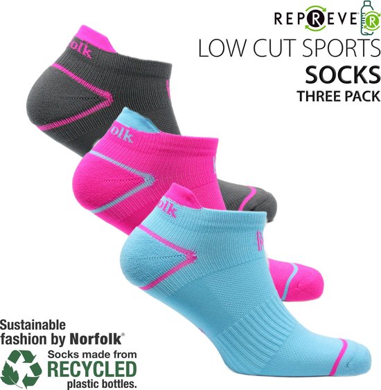 Op zoek naar een kwalitatieve, milieuvriendelijke en laag uitgesneden hardloopsok? Zoek niet verder dan de GREENLINE serie sokken van Norfolk, gemaakt van Repreve® garen. Repreve® is een duurzame, milieuvriendelijke vezel gemaakt van plastic flessen die anders in onze oceanen terecht zouden komen. Door dit innovatieve materiaal te gebruiken, kunnen we helpen de hoeveelheid plasticvervuiling in onze wereld te verminderen. Deze laag uitgesneden sportsokken zijn perfect voor hardlopers die op zoek zijn naar een comfortabele, ademende sok die hun voeten droog en koel houdt tijdens het sporten. De Norfolk GREENLINE sokken zijn verkrijgbaar in een verpakking van drie paar, zodat je altijd een vers paar bij de hand hebt.