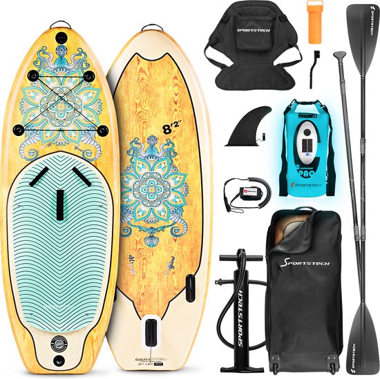 De SPORTSTECH WBXs 8in1 stand up paddling board set is de perfecte manier om te genieten van de zomerzon en het water. Deze veelzijdige set bestaat uit een SUP, kajakstoel, LED-droogtas en luidspreker, zodat je kunt peddelen, ontspannen en feesten op je eigen persoonlijke drijvende eiland. De duurzame SUP is perfect voor zowel beginners als ervaren peddelaars, en het comfortabele kajakzitje betekent dat je even kunt pauzeren en van het uitzicht kunt genieten zonder je board te hoeven verlaten. De LED droogzak houdt je spullen veilig en droog, terwijl de krachtige waterdichte luidspreker je laat genieten van je favoriete muziek terwijl je peddelt. Of je nu rond het meer vaart of een afgelegen kustlijn verkent, de SPORTSTECH WBXs 8in1 stand up paddling board set is de ultieme manier om van het buitenleven te genieten.