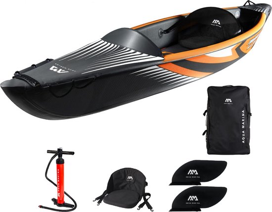 Zoek je een snelle en wendbare kajak die plaats biedt aan één persoon en al zijn spullen? Zoek niet verder dan de Aqua Marina Tomahawk AIR-K375 opblaasbare kajak! Deze kajak is perfect voor peddelaars van alle niveaus die willen genieten van een dagje op het water. De Tomahawk is uitgerust met een verstelbare voetsteun en zitting, zodat je comfortabel kunt zitten terwijl je peddelt.