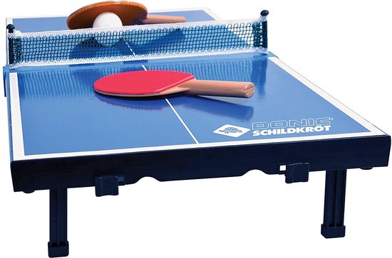 Deze tafeltennistafel is de perfecte aanvulling voor elke speelkamer, studeerkamer of garage. Met zijn strakke zwarte afwerking past hij bij elk decor. De Donic-Schildkröt minitafeltennistafel is gebouwd met een stevig stalen frame en stelpoten voor stabiliteit en gelijkmatig spel. Het tafelblad is gemaakt van een glad, laminaat oppervlak dat gemakkelijk schoon te maken is en bestand is tegen kromtrekken. De tafel wordt geleverd met twee peddels en drie ballen, zodat je meteen kunt beginnen met spelen. Als je de tafel niet gebruikt, kun je hem inklappen om hem gemakkelijk op te bergen. De Donic-Schildkröt mini tafeltennistafel is de perfecte manier om de familie bij elkaar te krijgen voor wat plezier en competitie.