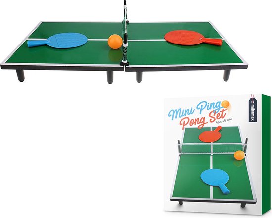 Deze mini pingpongtafel is de perfecte aanvulling voor elke speelkamer! De tafel is gemakkelijk in elkaar te zetten en wordt geleverd met alles wat je nodig hebt om te beginnen met spelen, waaronder twee batjes, een net en vier pingpongballen. De tafel meet 90 x 40 cm en is daarmee de perfecte maat voor kleinere ruimtes. Of je nu op zoek bent naar een leuke manier om gasten te vermaken of gewoon wat wilt oefenen voor je volgende wedstrijd, deze mini tafeltennistafel is een geweldige keuze.