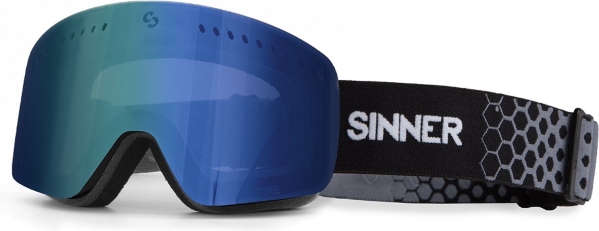 Op zoek naar iets anders in een skibril? Kijk dan eens naar de SINNER PINE skibril/snowboardbril. Wat deze skibril uniek maakt, is dat hij geen fysiek frame heeft. De blauwe spiegellens (categorie 3) is perfect voor zeer zonnige omstandigheden. Hij vermindert schittering en biedt 100% UV-bescherming. De dubbele lens heeft een speciale anticondenscoating aan de binnenkant en ventilatiekanalen in de lens, waardoor de kans op condensatie aan de binnenkant van de lens aanzienlijk afneemt. Het hypoallergene schuim rondom het montuur voorkomt vervelende drukpunten op het gezicht en is gemaakt van anti-allergisch materiaal. De verstelbare, elastische band is voorzien van siliconen, zodat deze goed op de helm blijft zitten.