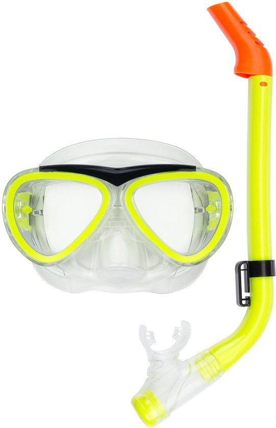Op zoek naar een onderwateravontuur? Dan is deze snorkelset perfect voor jou! De felgele kleur is perfect voor kinderen en de set bevat een duikbrilmondstuk en zwemvliezen. De schoenmaat is verstelbaar van 38-40, dus perfect voor groeiende voeten. Bovendien zorgt de no-fog lens voor helder zicht terwijl je de diepte verkent.