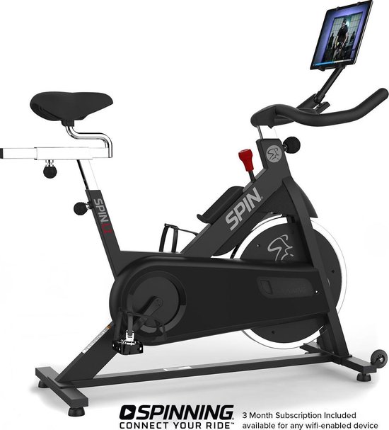 De Spinning® L1 Bike met Media Mount - Cadanssensor - Hartslag Armband is een geweldige instap Spinning® fiets die alle essentiële functies biedt die je nodig hebt voor een geweldige training. Het 14 kg. perimeter geveerde vliegwiel en het vilten remblok zorgen voor een soepele, stille rit, terwijl je met de instelbare weerstand en de Quick Stop Resistance-knop je training kunt aanpassen aan je specifieke fitnessniveau. De transportwielen en verstelbare voeten maken het gemakkelijk om de fiets te verplaatsen en op te bergen, terwijl het Spinning® Digitale Abonnement toegang biedt tot honderden online lessen en trainingsprogramma's. Met de Media Mount (Tablet niet inbegrepen) kun je je tablet of smartphone gebruiken voor entertainment of fitness apps terwijl je traint.