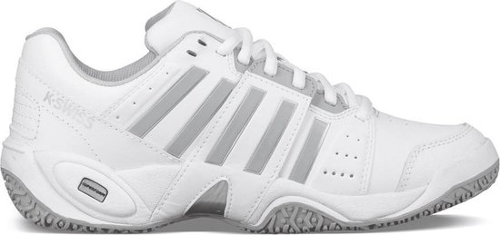 De K-Swiss Accomplish III Omni is de perfecte tennisschoen voor de veeleisende speler. Het klassieke ontwerp biedt comfortabele ondersteuning op de baan, terwijl de brede pasvorm en het leren bovenwerk zorgen voor duurzaamheid en ademend vermogen. De K-EVA tussenzool biedt schokdemping en duurzaamheid, terwijl de Shock Spring technologie in de hiel schokken vermindert en het comfort verhoogt. Soepeer je spel met de Accomplish III Omni.