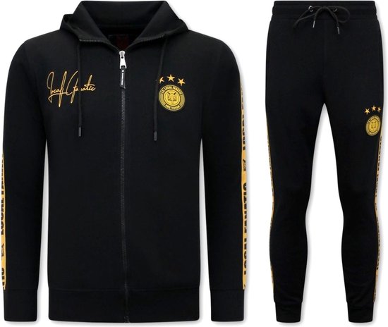 Maak kennis met ons nieuwste trainingspak, het Herentrainingspak - Hooded Ribbon - Zwart/Goud. Dit trainingspak is perfect voor wie een statement wil maken tijdens het sporten of gewoon lekker thuis rondhangen. Het zwart-gouden kleurenschema is opvallend en stijlvol, en het ontwerp met capuchon betekent dat je de mate van warmte en bedekking die je nodig hebt kunt aanpassen. De stof is licht en ademend, waardoor hij ideaal is voor het sporten of voor dagelijks gebruik. Bovendien geven de geribbelde details een vleugje textuur en interesse. Of je nu gaat sporten of gewoon thuis ontspant, dit trainingspak is een must-have voor je garderobe.