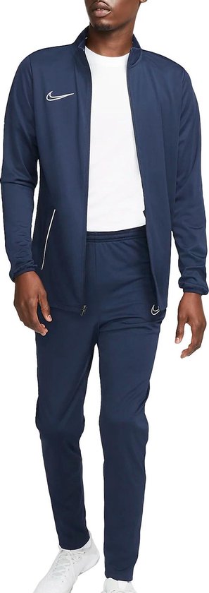 Zoek je een veelzijdig en stijlvol trainingspak dat je zowel in de sportschool als in de stad kunt dragen? Zoek niet verder dan het Nike Academy Tracksuit. Dit trainingspak is ontworpen met een normale pasvorm en taps toelopende pijpen voor een flatterend silhouet, en heeft een elastische tailleband met trekkoord voor een comfortabele en verstelbare pasvorm. De broek heeft ook twee zijzakken, perfect om onderweg je telefoon of sleutels in op te bergen. De jas heeft een rits aan de voorkant voor gemakkelijk aan- en uittrekken, en heeft ook twee zijzakken. De marine kleur is veelzijdig en stijlvol, en zal er geweldig uitzien bij alle sneakers of sportschoenen. Gemaakt van 100% polyester, is dit trainingspak machinewasbaar voor gemakkelijk onderhoud.