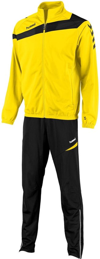 Maak kennis met het Elite Poly Suit Tracksuit van hummel. Dit trainingspak is perfect voor iedereen die een snelle en moderne look wil. Het Elite Polyester Suit is gemaakt van sneldrogend en absorberend materiaal, waardoor het ideaal is om op te drukken. De gele kleur is perfect voor elke gelegenheid, of je nu naar de sportschool gaat of gewoon boodschappen doet. Het pak heeft ook twee zakken met rits, zodat je onderweg je spullen veilig kunt bewaren. Bestel je Elite Poly Suit Tracksuit vandaag nog en geniet van een stijlvolle en comfortabele look waarmee je de hele dag in beweging blijft.