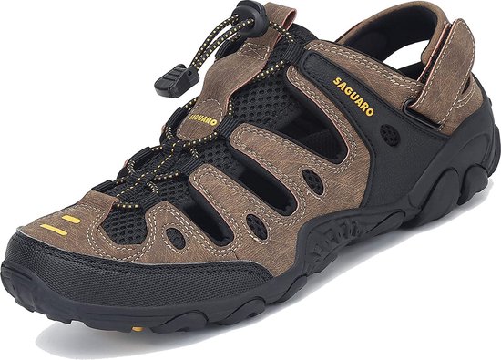 Introductie van outdoorsandalen, het perfecte schoeisel voor je volgende buitenavontuur. Deze stijlvolle en lichtgewicht sandalen zijn comfortabel om te dragen en bieden uitstekende grip en duurzaamheid met hun rubberen buitenzolen. Met een ademende voering van gaas en een rubberen teenbescherming houden ze je voeten koel en beschermd terwijl je op ontdekkingstocht gaat. Bestel je paar vandaag nog en ben klaar voor alles wat het buitenleven te bieden heeft.